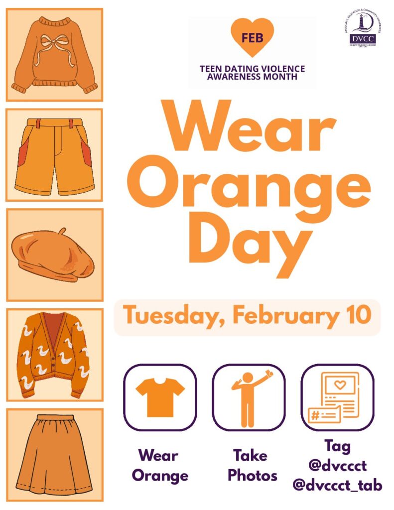 Join individuals around the nation in wearing orange on Tuesday, February 10th! Wear Orange Day aims to raise awareness of teen dating abuse and send the message that abuse will not be tolerated.